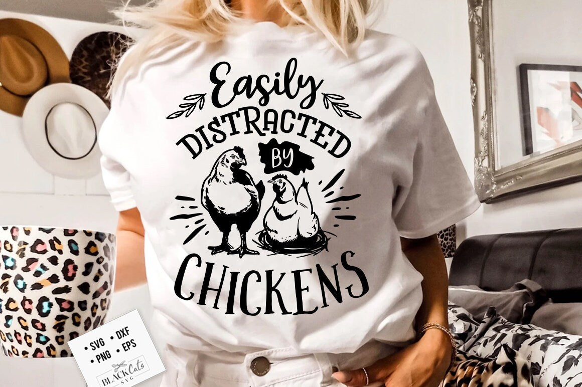 Easily distracted by chickens svg, Chicken svg, Funny chickens svg, coop svg, Farmhouse chicken svg, Sarcastic chicken svg