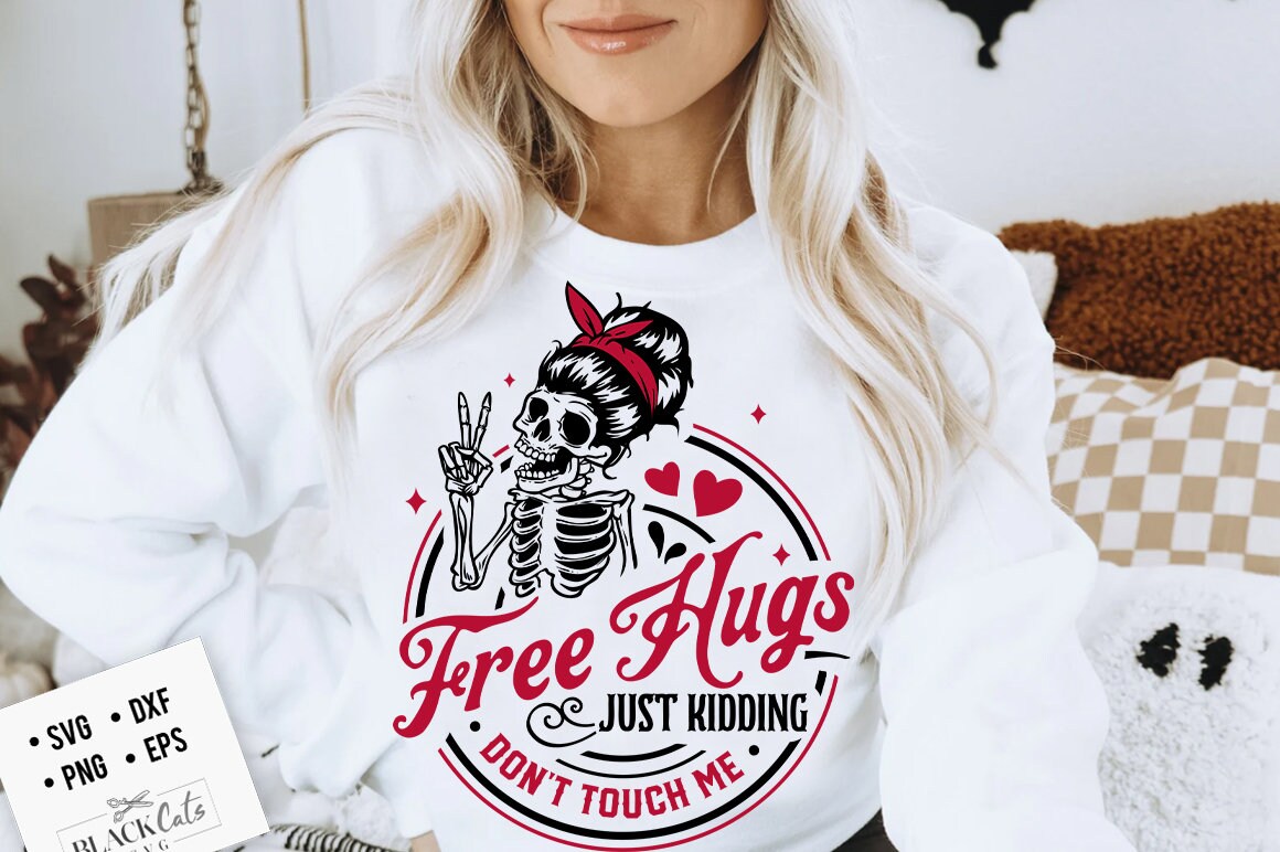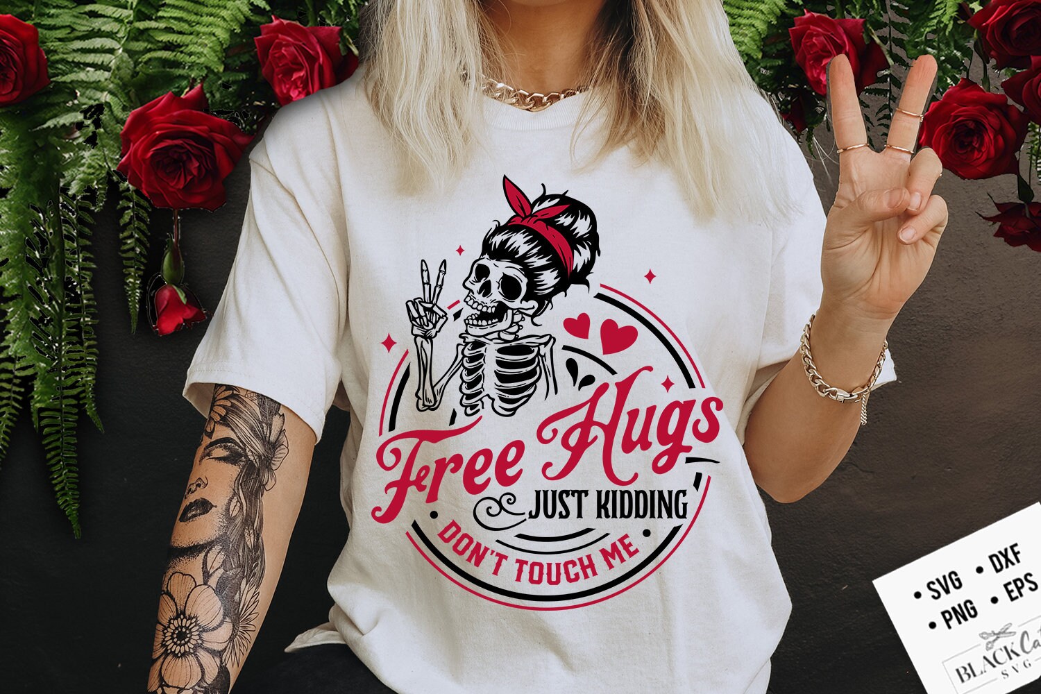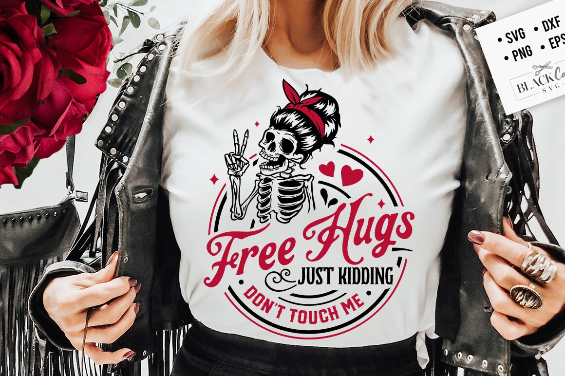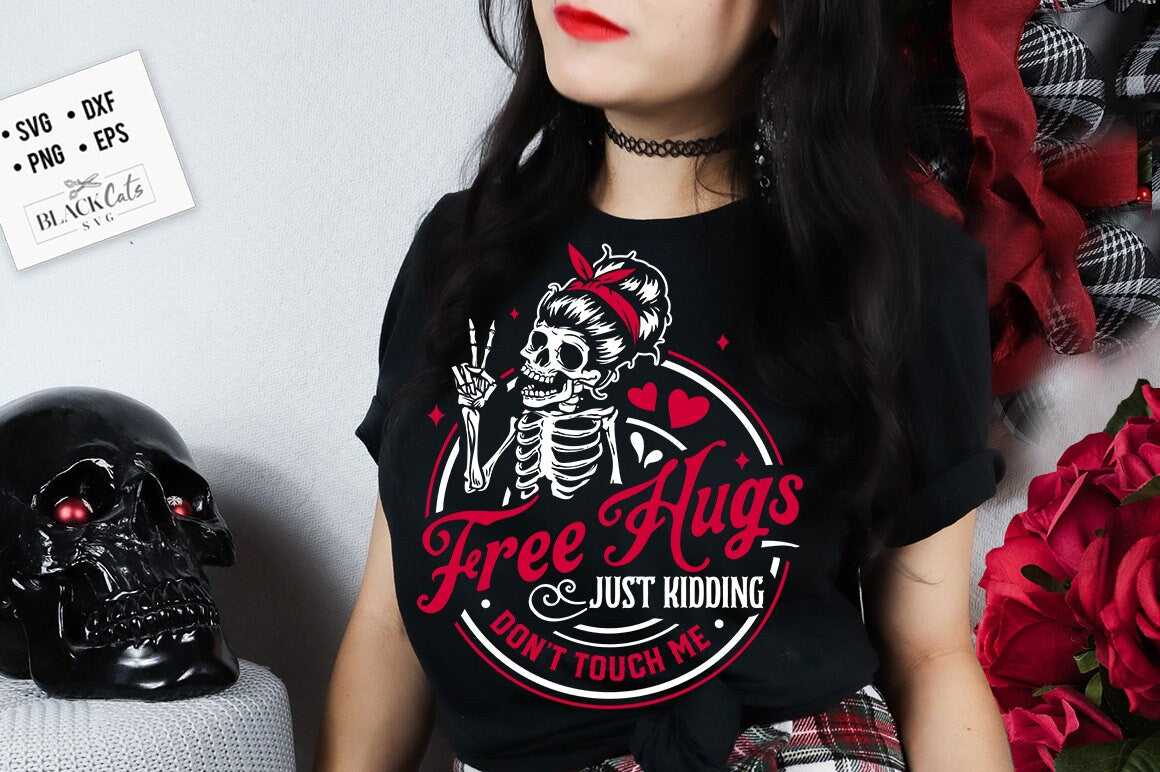 Free hugs just kidding svg, Don't touch me svg, Skeleton Valentines Day svg, Funny valentine's day SVG, valentine's day skeleton SVG