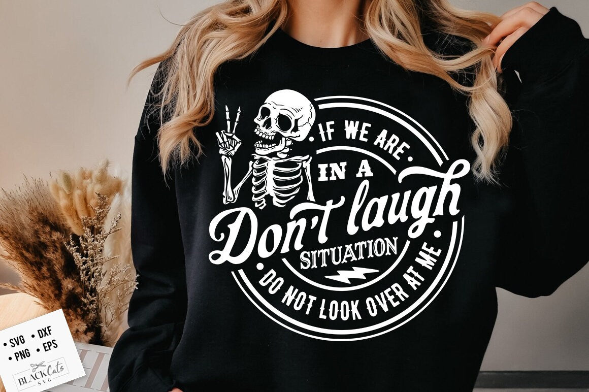 If we are in a don't laugh situation SVG, Do Not Look Over At Me Svg, Funny Svg, Sarcastic Svg, Peace sign skeleton svg, skull svg