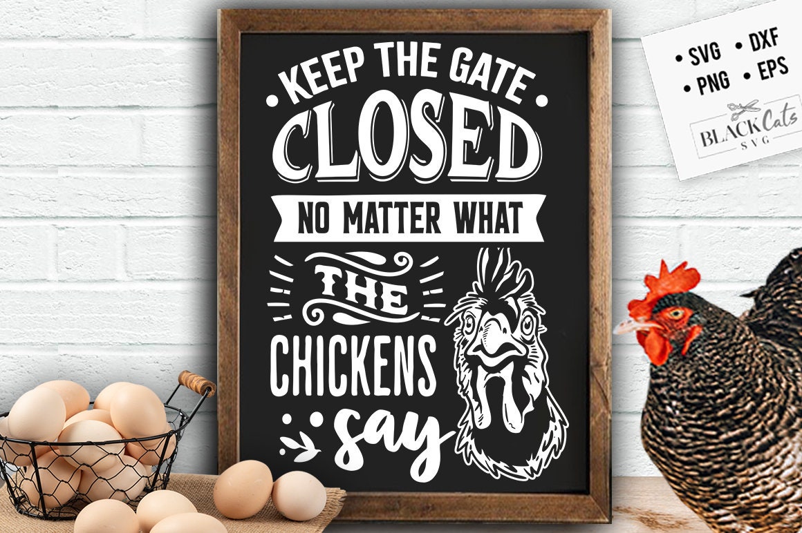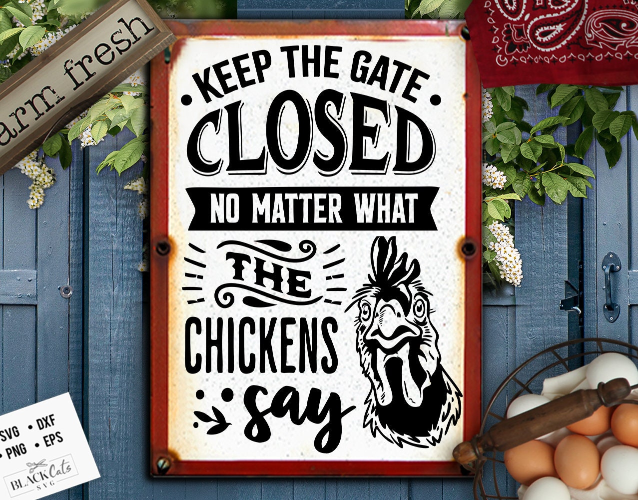 Keep the gate closed no matter what the chickens say svg, Chicken svg, Funny chickens svg, Farmhouse chicken svg, Sarcastic chicken svg