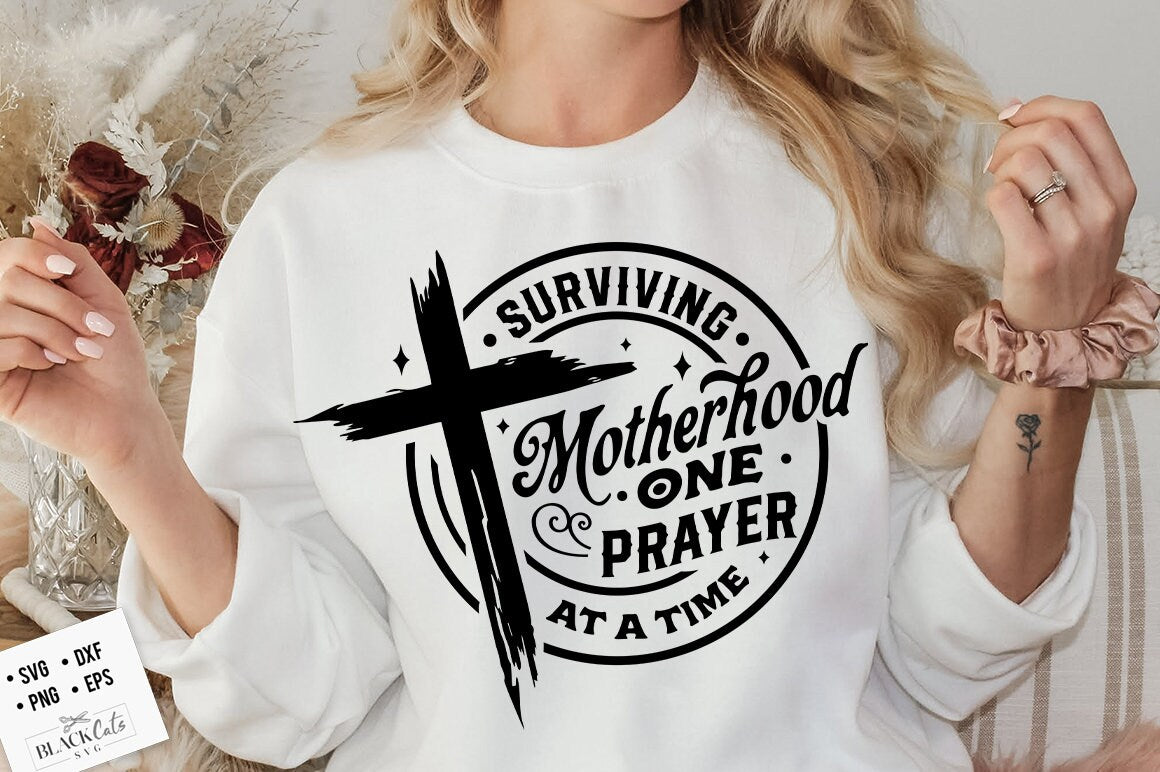 Surviving motherhood one prayer at a time svg, Surviving motherhood svg, Distressed cross svg, Mama prays svg, Mom Life Svg, Mom svg