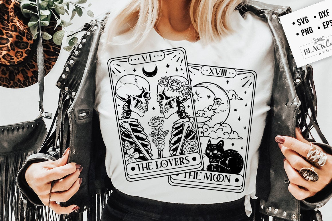 The Lovers SVG, The Lovers tarot card svg, Skeleton lovers svg, Love skeletons svg, Tarot card svg, the moon tarot card svg